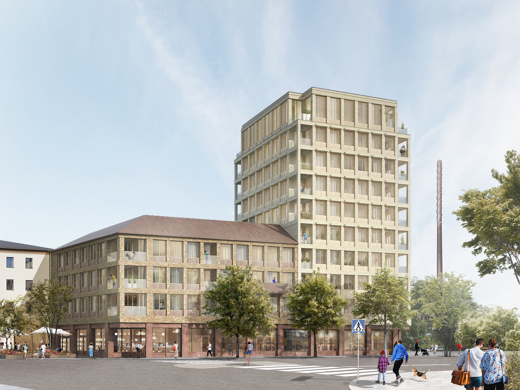 A new residential district is developed in conjunction with the local city centre of Täby. We are assigned a plot facing the south entrance of the area, and a small square, to design a flagship building called Accenthuset.