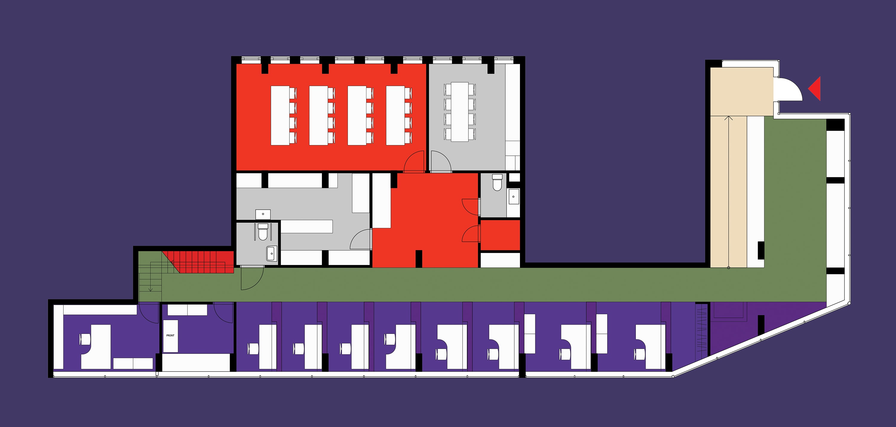 The head office of Åhrén Dental, located in a 1970's building originally designed by Georg Varhelyi. The project takes advantage of indirect daylight, focusing on careful detailing of the individual workspaces.