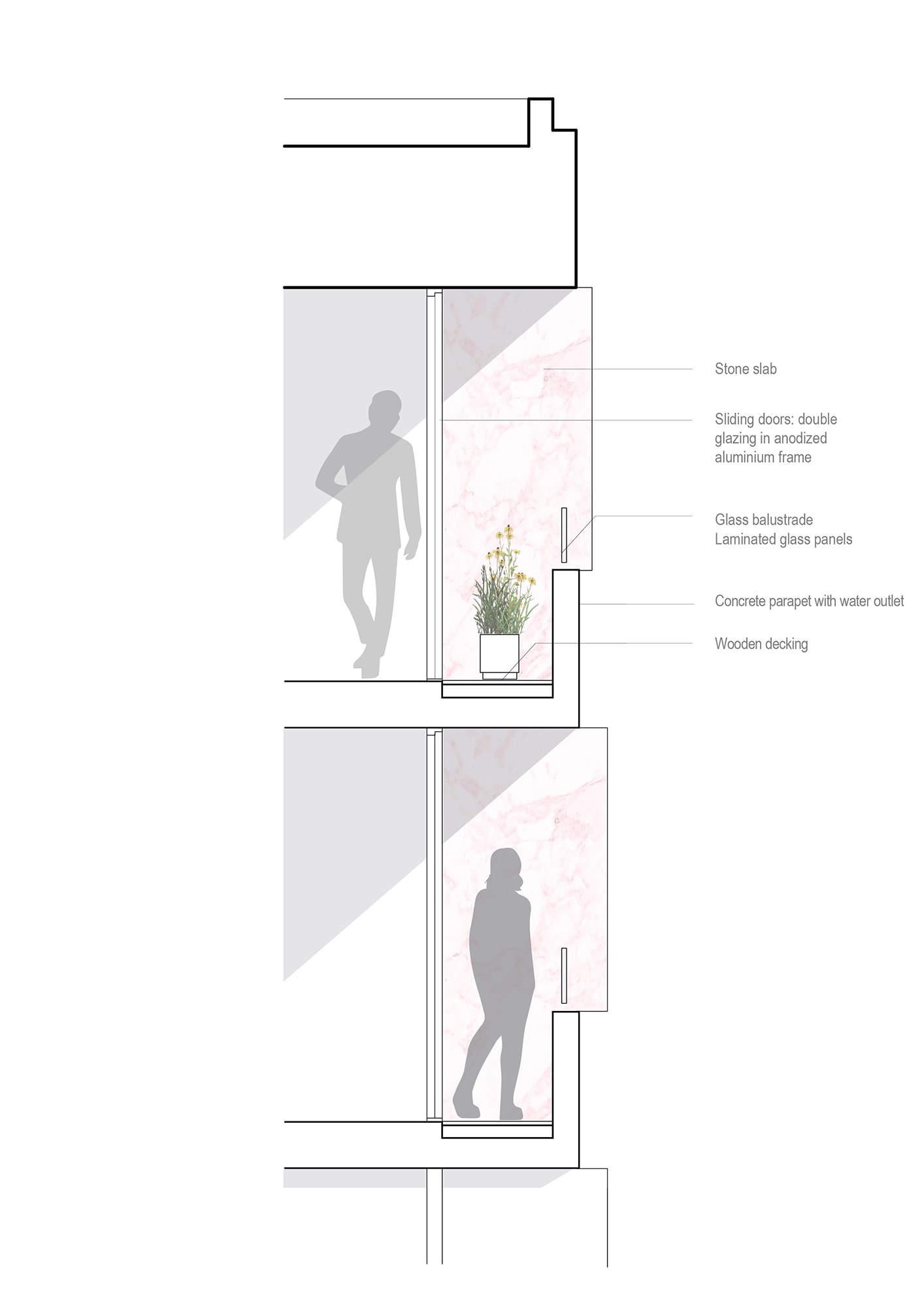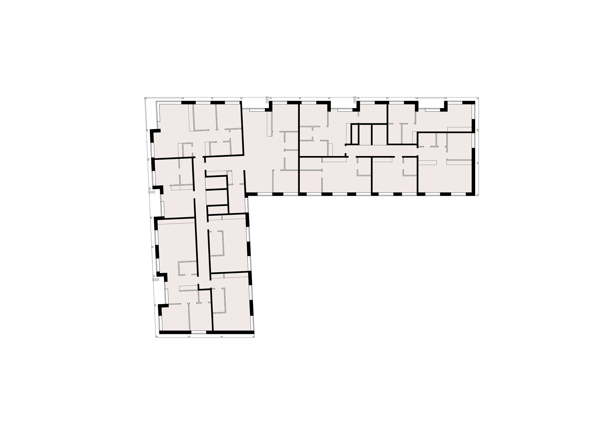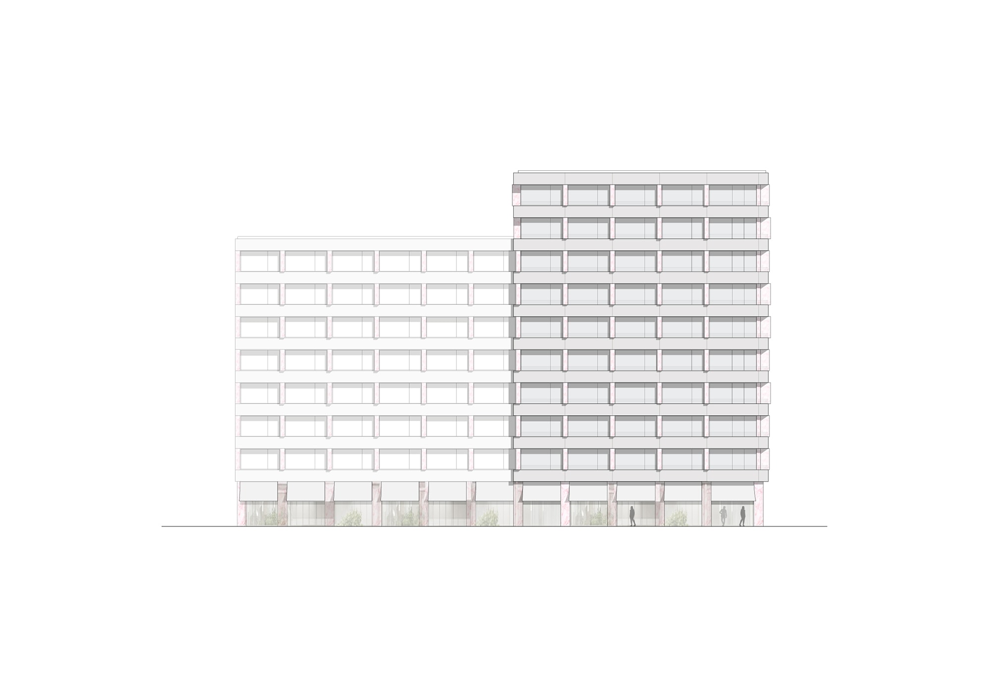Design proposal for a strategic corner in a completely new area in Solna north of Stockholm, where housing and offices will be developed with highest environmental standards. The building is conceived as a stack of solid blocks made out of rough-hewn concrete and stone, contrasting the glossiness of modern office buildings.