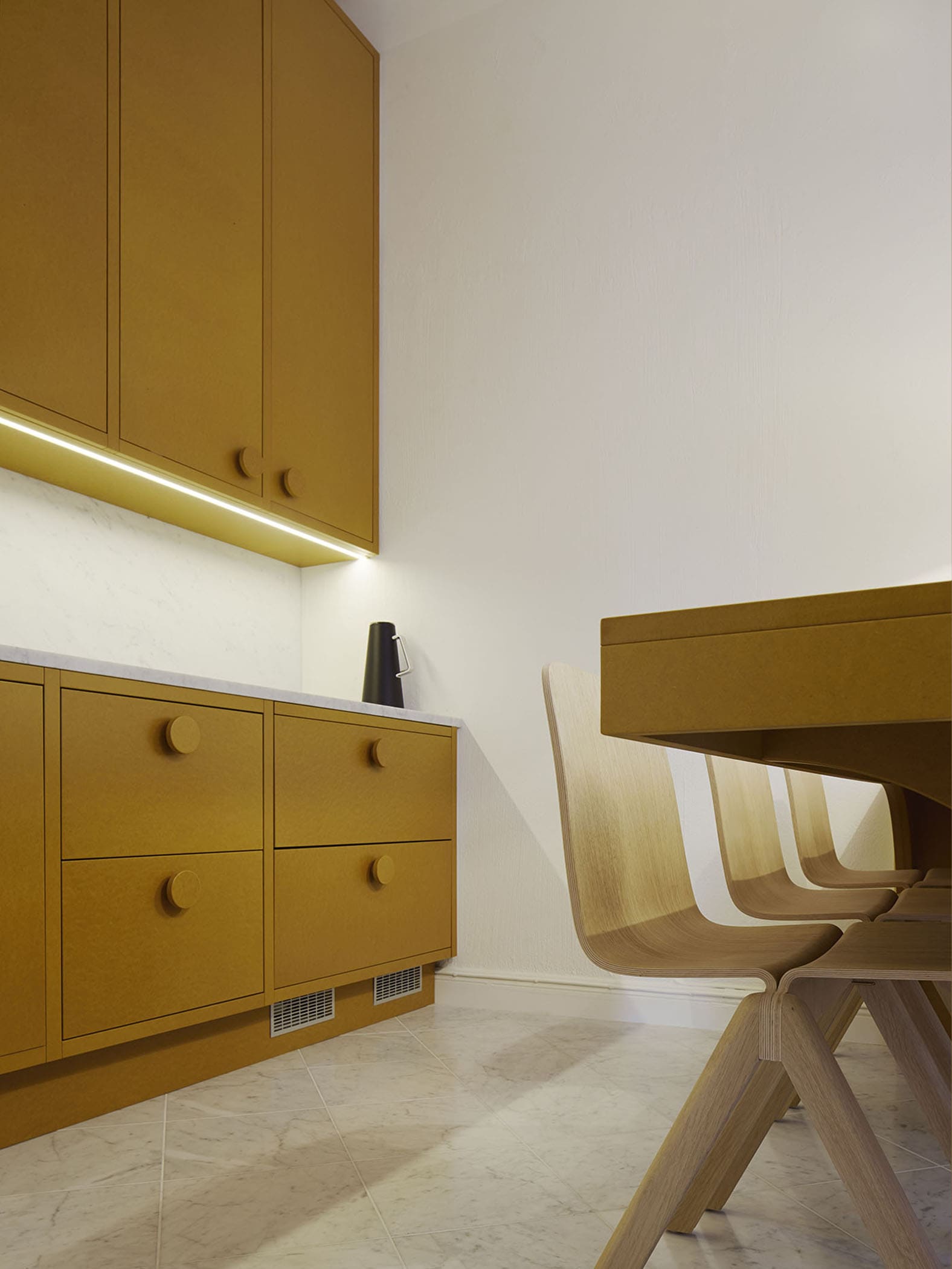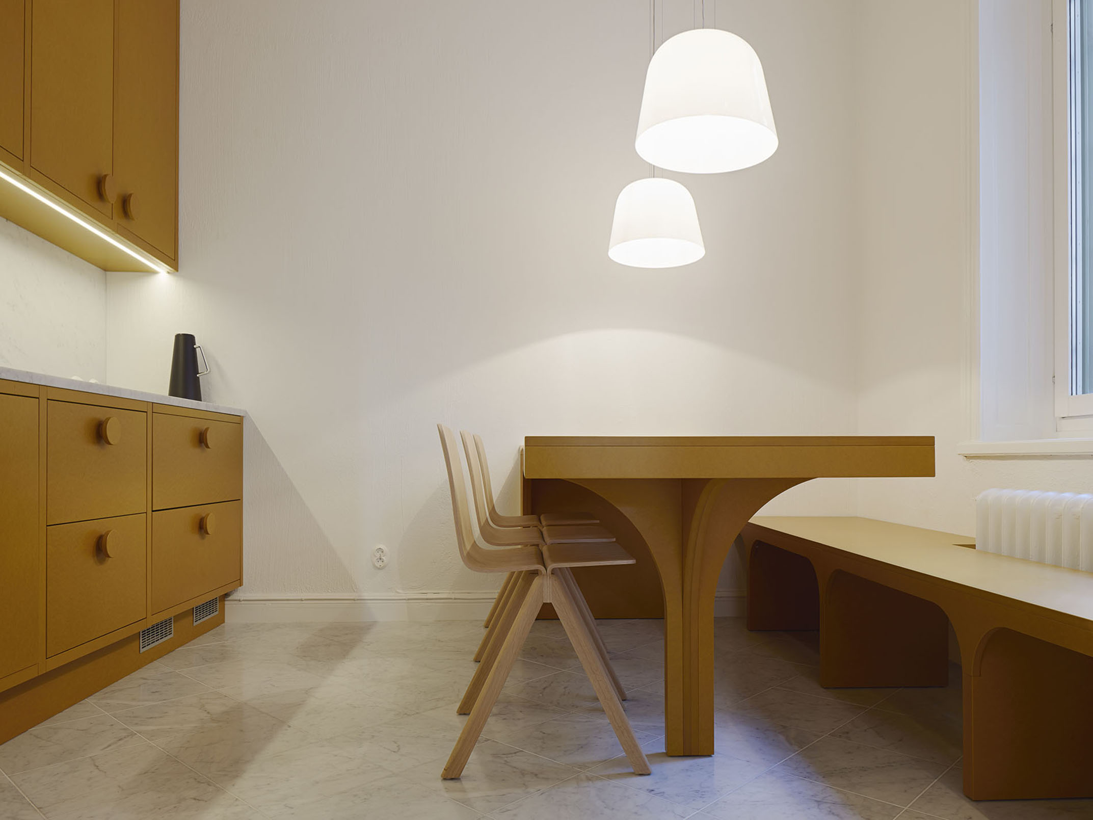 Building contractor FSG needed a place to gather, as their team members spend most of their work hours on construction sites. We designed an office for temporary work and meetings, still endowed with a feeling of homecoming.