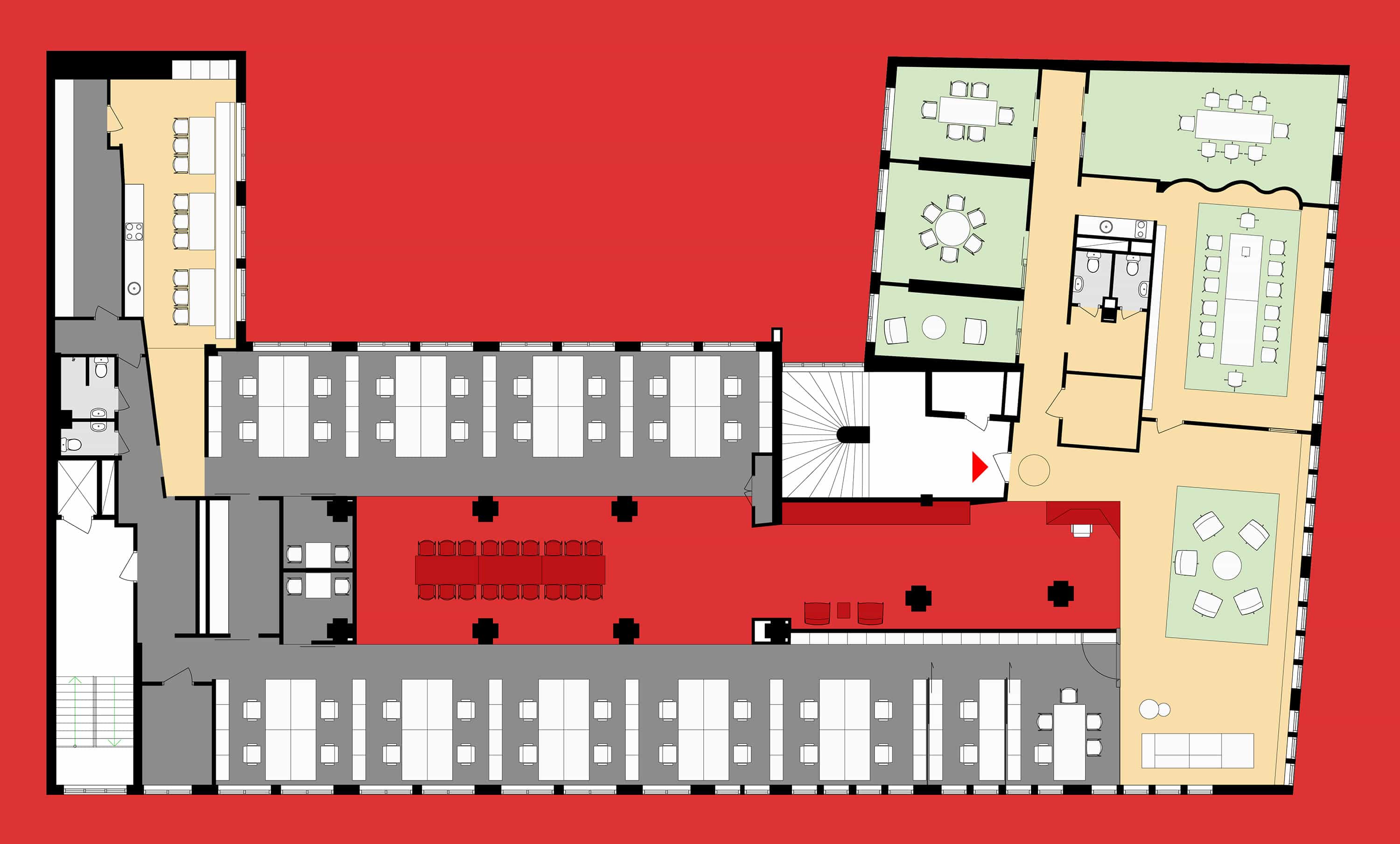 HOW’s task was to convert an existing office structure, taken over from a sister company within the same group, and optimize it for the new inhabitant, in terms of space and facilities, as well as branding. Savings in both costs and construction time were made thanks to a close collaboration with the landlord, and leveraging several of the existing structures.
