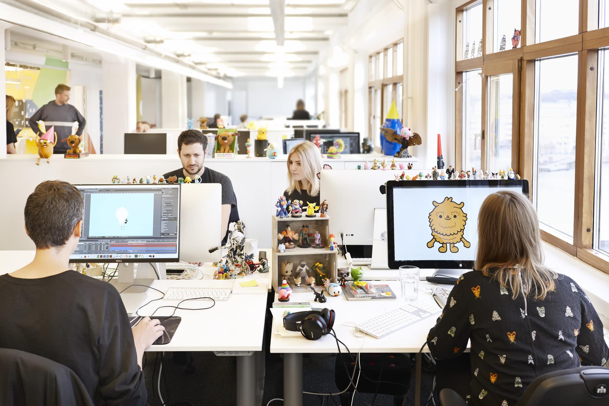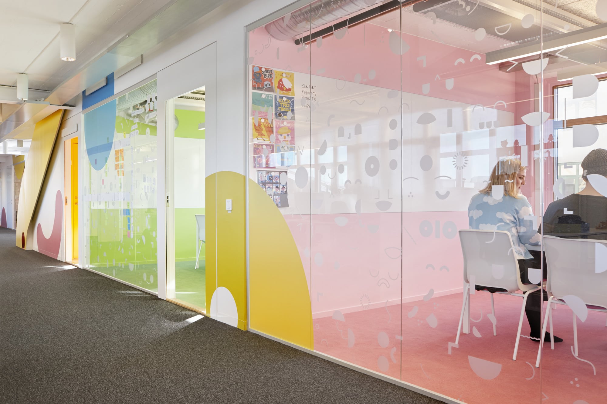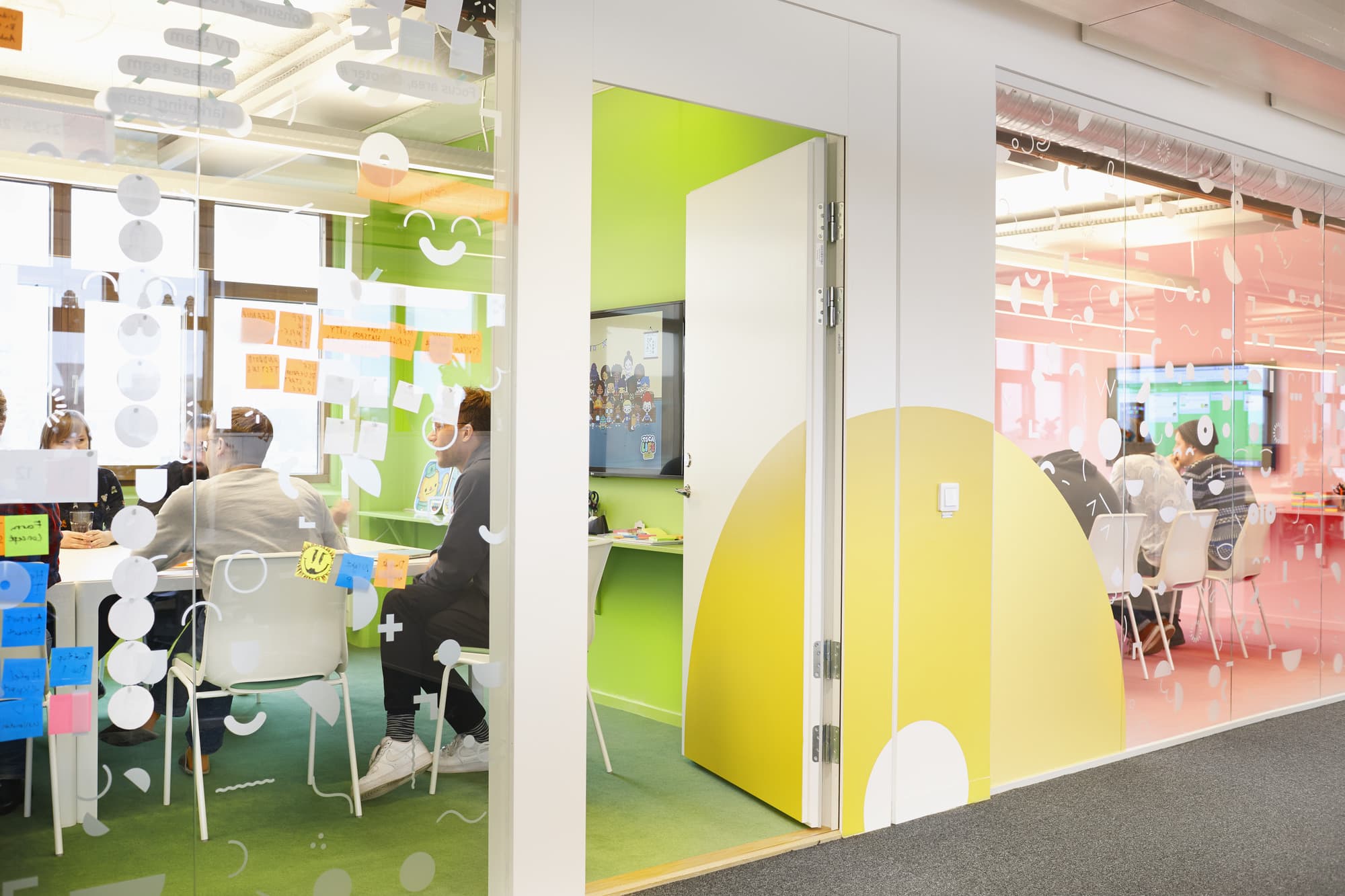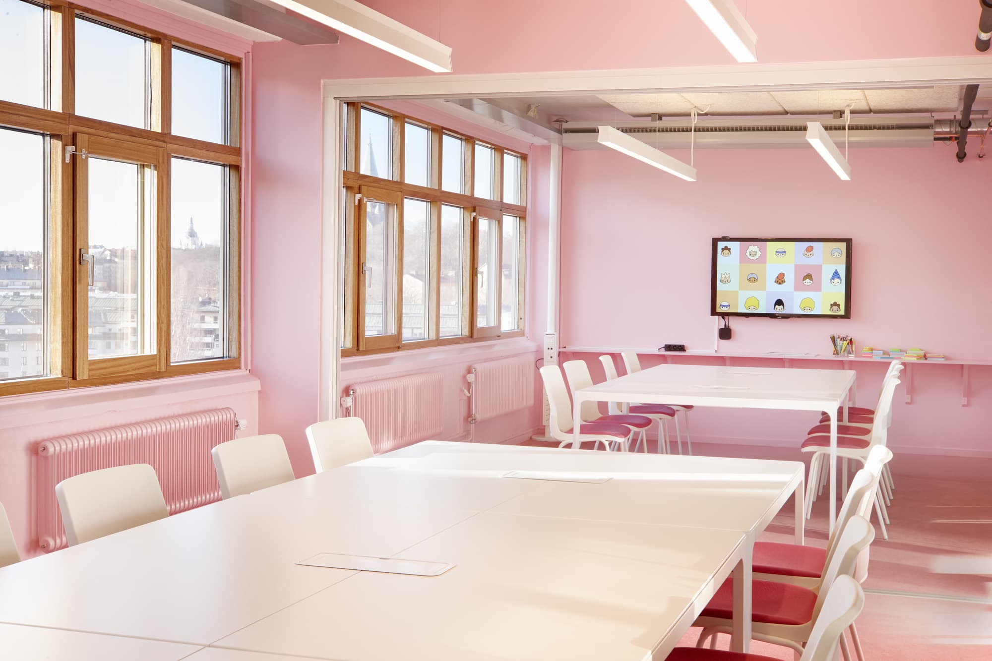 Their new headquarters is situated in a former light bulb factory in Hammarby Sjöstad, Stockholm. The spaces have a built-in playfullness, where some are giant sized, some are hidden and others are monochrome. Colours have an important role in the project, which was carried out on a lean budget.